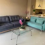 A comprehensive selection of in-room comforts features a flat-screen TV with satellite channels, as well as an ironing set and climate control. Sound-proofed windows, along with a sofa set and a work desk, ensure a more enjoyable stay. Beds fitted with hypoallergenic pillows are at guests' disposal. Also, the apartment comes with a separate toilet and a shower in the bathroom. Moreover, there are hairdryers, guest toiletries, and bath sheets as well.